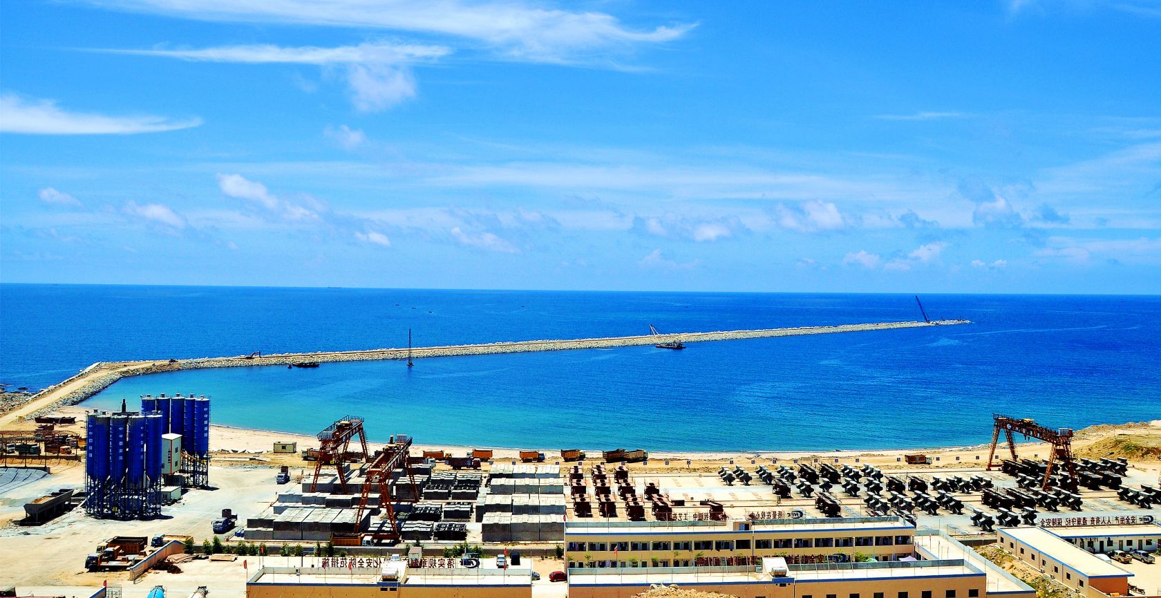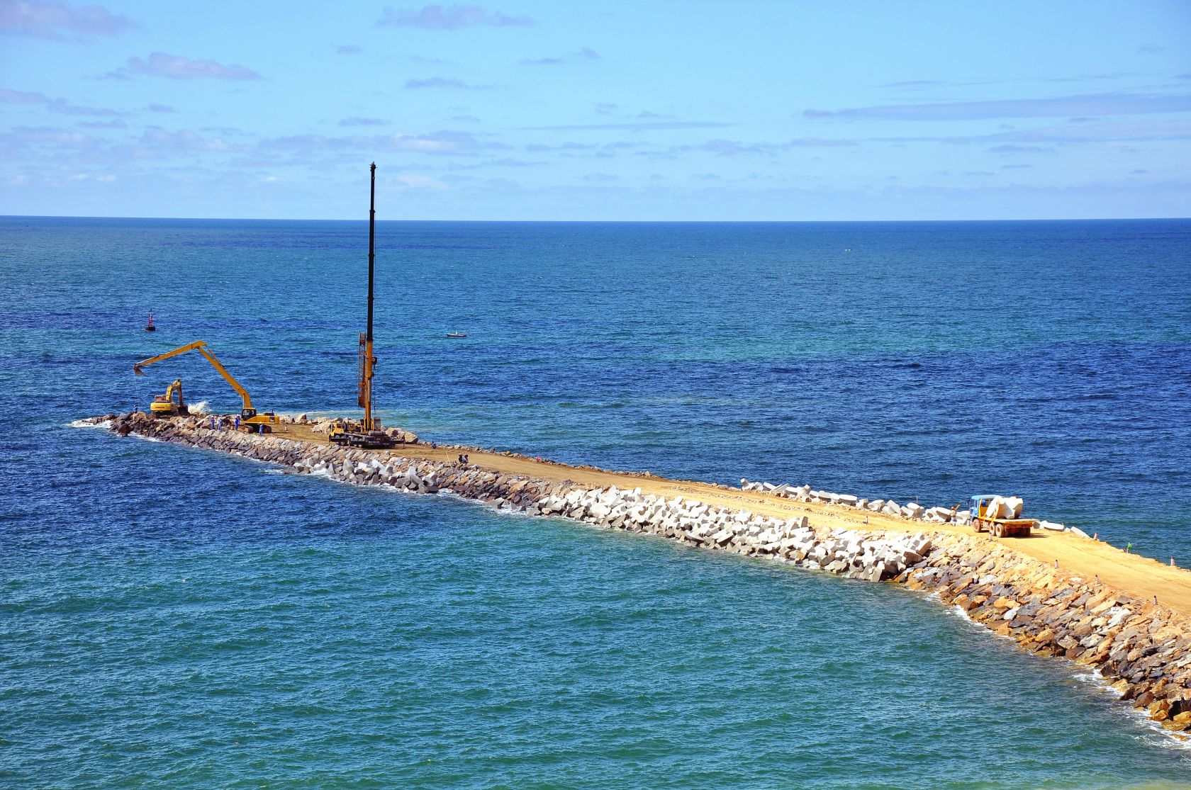 博賀新港區(qū)東防波堤建設(shè)現(xiàn)場