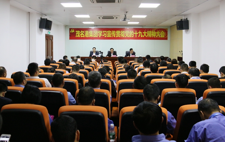 12月5日,茂名港集團(tuán)召開學(xué)習(xí)宣傳貫徹黨的十九大精神大會,集團(tuán)黨委書記、董事長劉乃英作學(xué)習(xí)宣傳貫徹黨的十九大精神輔導(dǎo)報(bào)告,集團(tuán)總裁羅大方宣讀了《中共茂名港集團(tuán)委員會關(guān)于印發(fā)<學(xué)習(xí)宣傳貫徹黨的十九大精神總體工作方案>的通知》,集團(tuán)黨委副書記、紀(jì)委書記肖炳璋主持會議。