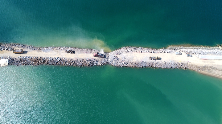 在粵西LNG造陸項目現(xiàn)場,趙廣輝認真聽取了項目負責人員關于項目合攏情況的匯報,詳細了解項目后續(xù)工作規(guī)劃。他肯定了茂名港集團作為業(yè)主單位在項目建設過程中不等不靠、主動作為,在與東西防波堤工程體量相當?shù)那闆r下,克服了資金緊、任務重、風險大、協(xié)調難等重重困難,在疫情期間解決了復工難的問題,順利實現(xiàn)了項目的合攏,標志著粵西LNG造陸項目基本具備交地條件,再次創(chuàng)造了屬于茂名港人的奇跡。他指出,粵西LNG造陸項目的建成,為粵西LNG接收站項目的落地夯實了基礎,對濱海新區(qū)發(fā)展綠色臨港產業(yè)具有重要而深遠的意義。他希望茂名港集團繼續(xù)發(fā)揮好濱海新區(qū)籌融資和項目建設平臺作用,充分總結、運用粵西LNG造陸項目建設管理經驗,攻堅克難,進一步助力濱海新區(qū)加快向海而興發(fā)展。