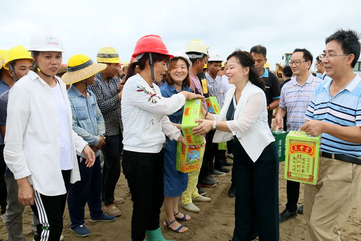 黃奕奕一行深入了解茂名港集團(tuán)常態(tài)化疫情防控、項(xiàng)目建設(shè)情況和職工防暑降溫工作,向高溫期間堅(jiān)守在一線的職工表示慰問,感謝他們?yōu)槊ㄔO(shè)和發(fā)展揮灑的汗水和心血。黃奕奕指出,開展向一線職工“夏日送清涼”活動(dòng),是工會組織關(guān)心職工生活,保障群眾安全生產(chǎn)工作的重要舉措,也是工會組織作為職工“娘家人”的職責(zé)所在。她要求,茂名港集團(tuán)要積極行動(dòng),發(fā)揮好業(yè)主單位統(tǒng)籌協(xié)調(diào)職能,強(qiáng)化參建各方協(xié)作,主動(dòng)做好職工的降溫防暑工作,認(rèn)真落實(shí)各項(xiàng)勞動(dòng)保護(hù)措施,切實(shí)關(guān)心廣大職工的身心健康,同時(shí)做好防控疫情,做到防疫降溫并舉。參建各單位工會要關(guān)心一線職工的生產(chǎn)、生活,確保職工工作安全,生活安心。她希望,各一線職工要立足本職崗位,發(fā)揚(yáng)新時(shí)代工匠精神,鑄造濱海新區(qū)精品工程,為茂名經(jīng)濟(jì)發(fā)展提供更大助力。
