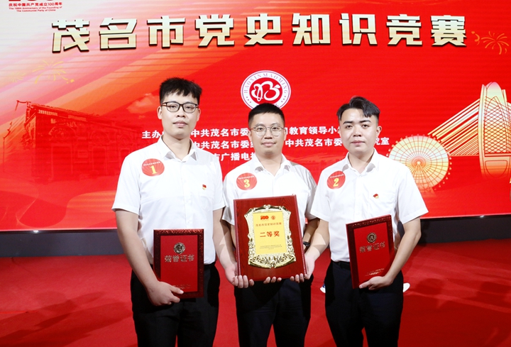 7月27日,由中共茂名市委黨史學(xué)習(xí)教育領(lǐng)導(dǎo)小組辦公室、市委組織部和市委黨史研究室主辦的茂名市黨史知識(shí)競(jìng)賽決賽圓滿結(jié)束。本次競(jìng)賽面向全市,以黨支部為單位進(jìn)行競(jìng)賽,經(jīng)多輪激烈角逐,茂名港集團(tuán)機(jī)關(guān)黨支部代表隊(duì)以小組第一名身份殺入決賽,在決賽中過(guò)關(guān)斬將、突破重圍,最終榮獲二等獎(jiǎng)。
