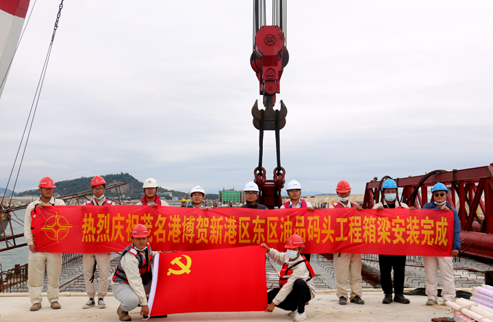 “對準,好的,到位了,開始落梁!” 10月22日上午10時,隨著現(xiàn)場施工負責人一聲令下,茂名港博賀新港區(qū)東區(qū)油品碼頭工程最后一件箱梁順利安裝,該工程公用管廊箱梁安裝作業(yè)全部完成!