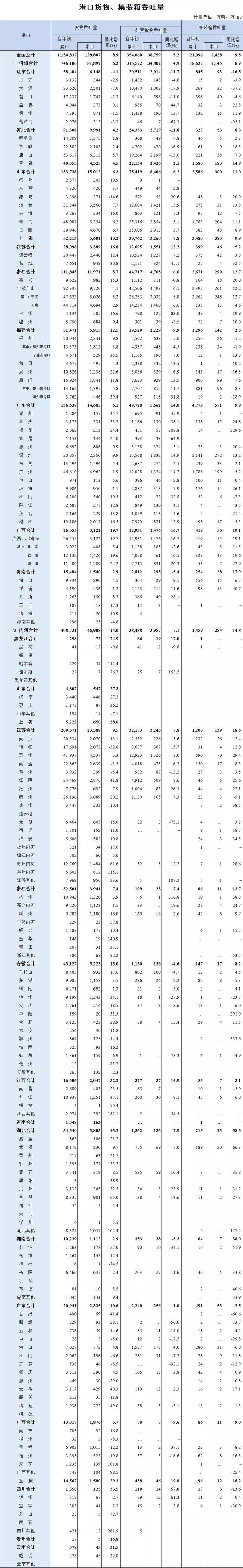 根據(jù)交通運(yùn)輸部數(shù)據(jù),1-9月,全國港口完成貨物吞吐量115.48億噸,同比增長8.9%;完成集裝箱吞吐量2.11億TEU,同比增長9.5%。其中,沿海港口完成貨物吞吐量74.6億噸,同比增長6.3%;完成集裝箱吞吐量1.86億TEU,同比增長8.9%。 9月份,兩大榜單排名未見變化,只是增速進(jìn)一步放緩,集裝箱吞吐量方面東莞港已與去年持平,福州港吞吐量增速轉(zhuǎn)為負(fù)數(shù),不過從總體來看,集裝箱吞吐量與貨物吞吐量的增速降幅不大,已進(jìn)入平穩(wěn)增長區(qū)間。從海關(guān)數(shù)據(jù)來看,9月份當(dāng)月進(jìn)出口同比增長15.4%,增速較8月份回落了3.5個百分點(diǎn)。 港口圈認(rèn)為,這不意味著港口總體向好的發(fā)展趨勢就此打住,9月份,臺風(fēng)對長三角、東南沿海、珠三角各大港口生產(chǎn)運(yùn)輸都有影響,限電也波及各制造業(yè)大省,可能導(dǎo)致出口貨物減少。但這些因素的陰霾不會持續(xù)太久,在國家力保煤電供應(yīng)的政策下,第四季度港口生產(chǎn)數(shù)據(jù)仍將保持相對穩(wěn)定的增長。 附交通運(yùn)輸部完整數(shù)據(jù):
