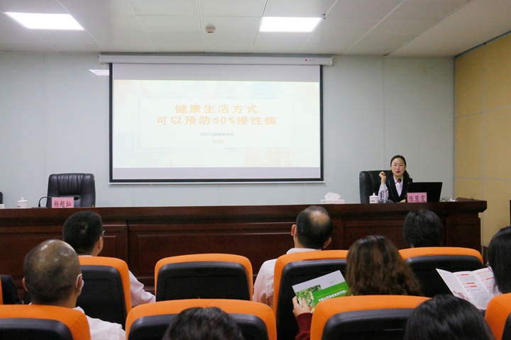 為踐行習(xí)近平總書記關(guān)于健康中國的重要論述,根據(jù)市衛(wèi)生健康局通知精神,結(jié)合集團職工健康文化月活動安排,12月16日,集團工會邀請茂名市健康教育所副所長陳慧雯到集團開展“好心茂名,健康大課堂”健康科普講座。集團黨委委員、副總裁、工會主席楊超燦,集團機關(guān)各部室、下屬企業(yè)共60余名干部職工參加了講座。
