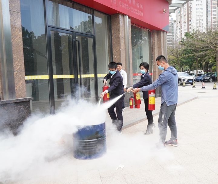 現(xiàn)場情景模擬疏散演練環(huán)節(jié),教官使用煙霧彈模擬會議室發(fā)生火災(zāi)情景,現(xiàn)場工作人員組織參訓(xùn)人員從五樓會議室按安全疏散通道指示撤離到一樓大門集中。在教官講解示范下,參訓(xùn)人員進(jìn)一步學(xué)習(xí)了干粉滅火器的使用方法和注意事項,參與了滅油桶火實操活動。
