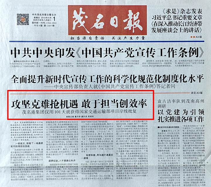 “那時候覺得挺艱難的,現在回想,卻是充滿了甘甜!劉冬回憶起當年的“101天”的故事。在2019年3月底,茂名港博賀新港區(qū)總體規(guī)劃獲得批復,吹響了集團工程大建設的號角,集團立即啟動化工碼頭、油品碼頭的岸線申請、立項報批等工作。劉冬跟隨著集團領導小組的周密部署,多次率集團項目報批組帶齊項目資料拜訪省廳有關部門,做到及時解答釋疑。在報審的過程中,為了使各項報批報建工作加快推進,劉冬帶齊資料主動拜訪有關部門,多次到國家交通部、省交通廳、省生態(tài)環(huán)境廳、省自然資源廳、市交通局等相關部門積極溝通協(xié)調,隨時做好解答匯報。如在設計上,在沒有取得立項之前,先召開內部審查會,先讓專家發(fā)現問題,提前修正初步設計、施工圖設計的內容,大大縮短了今后正式審批的時間。與設計無縫對接,急迫的文件,安排專人坐高鐵或者蹲點設計院,以最快速度取得成果。終于,在多方努力下,僅用時101天,拿到了東區(qū)油品碼頭的岸線批復,創(chuàng)造了茂名的岸線批復史的一個歷史,得到了交通部、省交通廳的一致好評。 “茂名已經盼了深水大港一百多年了,不能,也不應該再等了!長期的奔走,讓劉冬總結出了一套工作方法——“普遍+靶向”工作法:即先普遍后攻堅的各個擊破方式,明確主攻方向和核心突破口,并像釘子一樣深深地楔進每一個關鍵環(huán)節(jié)。“方法很笨,但是很奏效!劉冬謙虛地介紹道“工作關鍵是溝通,溝通的關鍵在高效的往來反饋”。幾年下來,劉冬在這套工作方法的支持下,參與推動博賀新港區(qū)東西防波堤、化工碼頭建設、30萬噸原油碼頭等項目的報批報建、茂名港口岸擴大開放等工作圓滿落地。