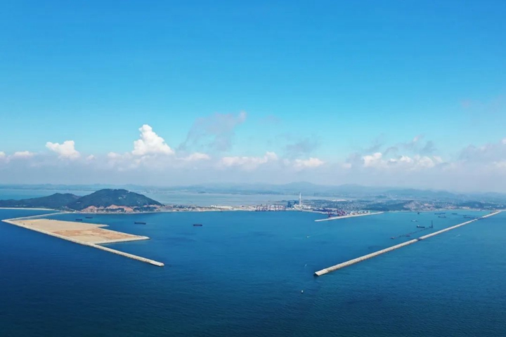 從灘涂到深水港,從藍(lán)圖到實(shí)景圖。路選對了,就不怕遙遠(yuǎn)。 2013年,隨著東閣嶺第一炮的炸響,東西兩條防波堤像巨臂一樣向海中延伸,圈出了茂名港人億噸大港的夢想。這一路,從零到有,從卡脖子到攻堅(jiān)突圍,再到不斷刷新成績,一路艱難險(xiǎn)阻,卻又步履堅(jiān)定! 挺難的,從一無所有中起步,大家都是咬著牙砥礪向前的!绷鹤驷摶貞泟?cè)肼殨r在港區(qū)看到的畫面,退潮時都是灘涂爛泥,漲潮時便是一片淺海,要把漁民拉上腰的護(hù)服穿在身上才港下地勘測,以免一漲潮就成了“落湯雞”。在防波堤項(xiàng)目建設(shè)的過程中,梁祖釗發(fā)現(xiàn)港區(qū)起步施工基礎(chǔ)差,東閣嶺開山爆破難度大、所需拋石量巨大、工期緊實(shí)施人員少等種種困難,基本沒有可參考借鑒的港口建設(shè)管理經(jīng)驗(yàn)。實(shí)施人員少,那就一崗多責(zé),一個人分擔(dān)多個角色輪回轉(zhuǎn)軸;沒經(jīng)驗(yàn),那就摸著石頭過河,參考國家港口工程建設(shè)管理規(guī)定,一項(xiàng)一項(xiàng)按照最高要求制定施工計(jì)劃,系統(tǒng)部署、優(yōu)化調(diào)度東西防波堤各種有利資源,最大限度增加?xùn)|西防波堤的作業(yè)面和水拋力度,使防波堤日均水拋量從8000立方米提升至16000立方米,大大加快了施工進(jìn)展。他深耕項(xiàng)目建設(shè)一線,在集團(tuán)黨委的帶領(lǐng)下全過程參與完成項(xiàng)目設(shè)計(jì)方案審核、招投標(biāo)、合同談判、施工建設(shè)、交工驗(yàn)收等工作。終于,在2018年7月,外圍全長5423米東防波堤和全長3315米的西防波堤順利交工驗(yàn)收,兩堤如同巨臂環(huán)繞形成環(huán)抱式港池面積6平方公里,為茂名實(shí)現(xiàn)“億噸大港夢”奠定了堅(jiān)實(shí)的基礎(chǔ),有力地助推茂名經(jīng)濟(jì)高質(zhì)量發(fā)展。
