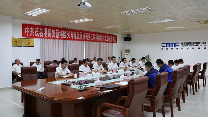 7月1日上午,30萬噸級(jí)原油碼頭“臨時(shí)黨支部”授牌儀式在博賀港區(qū)辦公樓二樓大會(huì)議室舉行,集團(tuán)黨委書記、董事長王志華,集團(tuán)黨委副書記、總裁肖炳璋,集團(tuán)黨委副書記、常務(wù)副總裁朱廣宇,集團(tuán)黨委委員、副總裁、工會(huì)主席楊超燦,集團(tuán)黨委委員、總工程師蔡光章,集團(tuán)副總裁李昱祺,黨群工作部、項(xiàng)目部黨員代表和施工單位及監(jiān)理單位代表共30多人參加了授牌儀式。