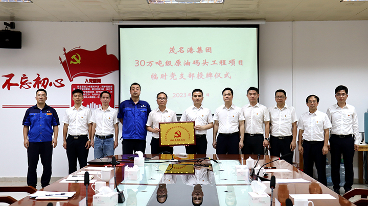會(huì)上宣讀了集團(tuán)黨委關(guān)于同意成立臨時(shí)黨支部批復(fù)文件,王志華向30萬噸級(jí)原油碼頭“臨時(shí)黨支部”授予牌匾,參建方代表30萬噸級(jí)原油碼頭“臨時(shí)黨支部”副書記姜華、30萬噸級(jí)原油碼頭“臨時(shí)黨支部”書記梁祖釗作表態(tài)發(fā)言。 王志華表示,30萬噸級(jí)原油碼頭工程引人矚目、意義重大,“臨時(shí)黨支部”黨員干部要錨定目標(biāo)并以高標(biāo)準(zhǔn)、高要求投入到項(xiàng)目建設(shè)中,增強(qiáng)實(shí)干增效觀念,帶頭在施工管理、安全生產(chǎn)、質(zhì)量保障中攻堅(jiān)克難,奮發(fā)進(jìn)取,全力以赴實(shí)現(xiàn)工程項(xiàng)目安全高效建成落地,為集團(tuán)高質(zhì)量發(fā)展注入紅色動(dòng)能。 王志華要求,“臨時(shí)黨支部”要為理論聯(lián)學(xué)、項(xiàng)目聯(lián)建、資源聯(lián)享、活動(dòng)聯(lián)辦、黨員聯(lián)動(dòng)提供良好的組織平臺(tái)。一是抓好理論學(xué)習(xí),筑牢思想防線。深入學(xué)習(xí)貫徹黨的二十大精神與習(xí)近平總書記視察廣東重要講話重要指示精神,不折不扣貫徹落實(shí)集團(tuán)黨委關(guān)于重點(diǎn)項(xiàng)目建設(shè)的決策部署。二是落實(shí)主體責(zé)任,打造特色品牌。充分發(fā)揮黨支部書記管黨治黨第一責(zé)任人職責(zé),依托項(xiàng)目例會(huì)、項(xiàng)目管理層協(xié)調(diào)會(huì),配合集團(tuán)黨委關(guān)于“書記項(xiàng)目”、“黨員先鋒模范崗”等工作部署,打造有特色、有載體、有氛圍的“黨建先鋒陣地”。三是凝心聚力,筑造支部戰(zhàn)斗堡壘。以黨建為引領(lǐng),調(diào)動(dòng)黨員干部干事創(chuàng)業(yè)的積極性,提高政治站位,推動(dòng)項(xiàng)目建設(shè)取得突破性進(jìn)展。四是堅(jiān)持正風(fēng)肅紀(jì),緊箍廉潔防線。嚴(yán)格落實(shí)中央八項(xiàng)規(guī)定和四風(fēng)建設(shè),把黨風(fēng)廉政建設(shè)與業(yè)務(wù)工作深度融合,多維度開展警示教育,做到教育常在、提醒常在、警鐘長鳴,營造反腐倡廉的輿論氛圍。 茂名港博賀新港區(qū)30萬噸級(jí)原油碼頭工程是廣東省重點(diǎn)工程,是提升茂名港等級(jí)的標(biāo)志性工程。項(xiàng)目建成后,對(duì)增強(qiáng)茂名港接卸大型原油運(yùn)輸船舶的能力,進(jìn)一步提升茂名港的總體發(fā)展水平,使茂名港真正成為廣東省沿海地區(qū)性重要港口和地區(qū)綜合運(yùn)輸體系的重要樞紐有重大意義。