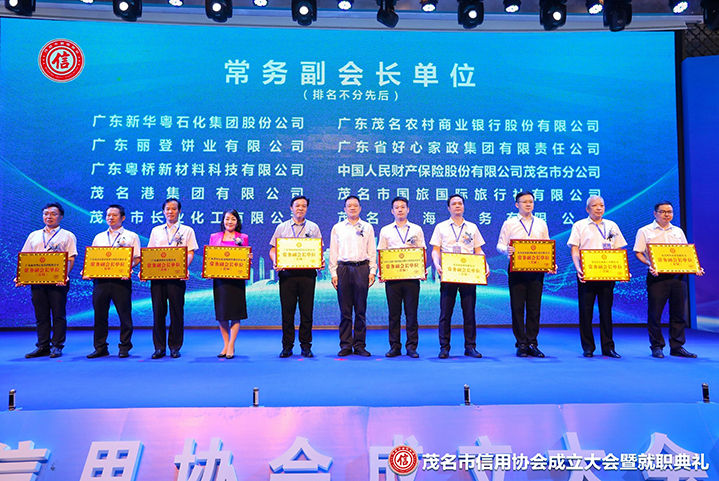 為加快推動(dòng)茂名市社會(huì)信用體系建設(shè),弘揚(yáng)誠實(shí)守信精神,助力提升茂名市企業(yè)信用建設(shè)水平,7月30日,市信用協(xié)會(huì)成立大會(huì)暨就職典禮在茂名溫德姆至尊酒店隆重舉行,茂名港集團(tuán)任首屆常務(wù)副會(huì)長(zhǎng)單位。集團(tuán)黨委副書記、總裁肖炳璋出席了活動(dòng)。