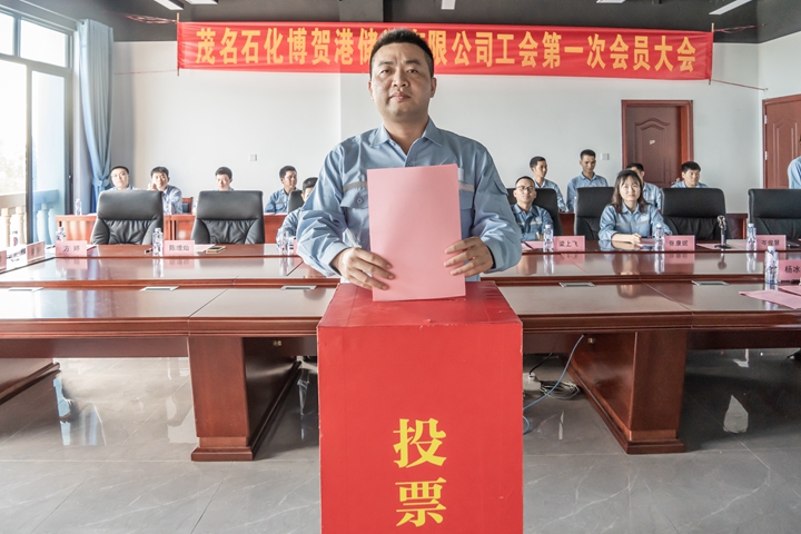 12月15日下午,茂名港集團與中國石化合資的茂名石化博賀港儲運有限公司召開工會第一次會員大會,公司總經(jīng)理梁中柳、副總經(jīng)理梁上飛、財務(wù)總監(jiān)莊宇斌和全體職工參加了會議。會議選舉產(chǎn)生第一屆工會委員和經(jīng)費審查委員會委員,陳增燦當選公司工會主席,岑俊慧當選副主席,方婷當選經(jīng)費審查委員會主任。