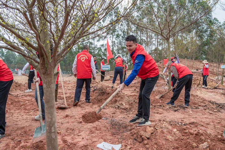 黨員志愿者們懷著滿腔熱情,早早到達(dá)了活動現(xiàn)場。大家迅速集結(jié),活力充沛、意氣風(fēng)發(fā),展現(xiàn)出茂名港人特有的精神風(fēng)采。在觀看完省國資委黨委書記、主任余鋼等領(lǐng)導(dǎo)致辭,以及“綠美廣東·國資國企在行動啟動”主會場視頻直播之后,市國資委黨委書記、主任梁劍輝致辭并宣布植樹活動正式開始,集團(tuán)黨員志愿者干勁十足、躍躍欲試,扛起鐵鍬和鋤頭,大步大步向前走,展現(xiàn)出了強(qiáng)烈的參與意愿和行動力。