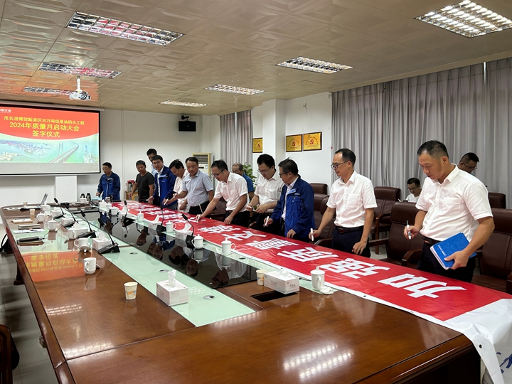 9月2號,茂名港博賀新港區(qū)30萬噸級原油碼頭工程召開了2024年“質(zhì)量月”活動啟動儀式。會議由茂名港博賀新港區(qū)30萬噸級原油碼頭項目經(jīng)理部(以下簡稱原油碼頭項目經(jīng)理部)經(jīng)理梁祖釗主持召開,原油碼頭項目經(jīng)理部、中交一航局第二工程有限公司(以下簡稱施工單位)、廣州港工程管理有限公司(以下簡稱監(jiān)理單位)等參建單位參加了本次啟動儀式。