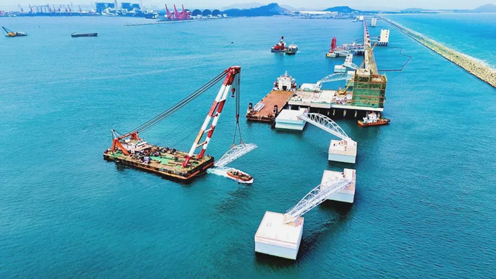 在新年伊始的奮進(jìn)號(hào)角中,茂名港30萬噸級(jí)原油碼頭工程于2月23日全面完成了鋼聯(lián)橋安裝施工,標(biāo)志著項(xiàng)目建設(shè)完成關(guān)鍵新節(jié)點(diǎn)。這一重要突破為30萬噸級(jí)原油碼頭工程新年開好局、起好步奠定了堅(jiān)實(shí)基礎(chǔ),也為加快項(xiàng)目建設(shè),保障工程如期竣工注入了強(qiáng)勁動(dòng)力。