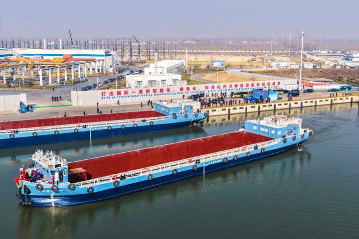 本次儀式交付的首批5艘純電動貨船及新簽訂的50艘訂單船舶,將全部投入京杭運河流域,構(gòu)成山東省首條實現(xiàn)常態(tài)化、規(guī);\輸?shù)募冸妱迂洿G色航線,覆蓋長三角至華北核心物流通道,單船年運力預(yù)計突破50萬噸。 山東新能船業(yè)有限公司董事長張強介紹,該船隊創(chuàng)新應(yīng)用“船電分離”商業(yè)模式及集裝箱式換電技術(shù),單船載貨量達2000噸,一次換電即可滿足核心運輸需求,全程實現(xiàn)零排放、低噪音運行。據(jù)測算,僅此批船舶全年即可減排二氧化碳超1300噸,環(huán)保效益斐然。 “此次交付的5艘多用途電船,搭載高容量箱式電源系統(tǒng),配套高壓大功率充換電設(shè)施,可實現(xiàn)15分鐘快速換電、270公里長效續(xù)航,成功構(gòu)建‘船-站-云’一體化商業(yè)閉環(huán)!睂幍聲r代決策顧問委員會副主任曾嶸表示。 濟寧能源集團黨委書記、董事長張廣宇說,新能船業(yè)是濟寧能源集團聯(lián)合寧德時代、中集集團、中船集團、武漢理工大學等共同打造的新能源船舶制造項目,可研發(fā)、設(shè)計、生產(chǎn)滿足不同應(yīng)用場景需求的內(nèi)河標準化船舶系列產(chǎn)品。截至目前累計簽約訂單180余艘,2025年下水船舶100艘、交付80艘。與法國達飛等企業(yè)合作建造的7艘新能源船成功出口至越南、坦桑尼亞、古巴、贊比亞等國家。