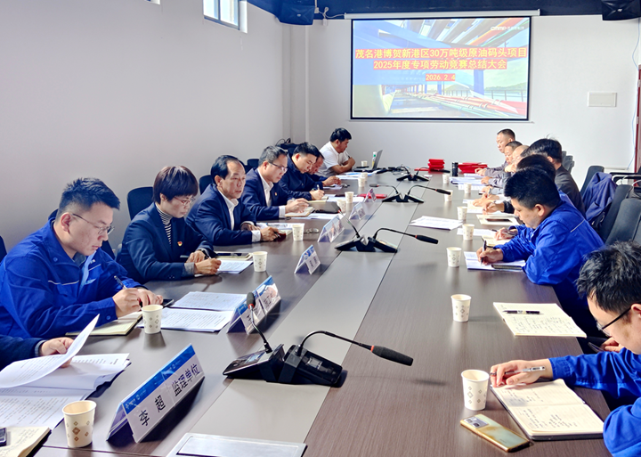 為全面總結(jié)2025年“黨建引領(lǐng)聚合力,書記項目顯成效,促項目保交工”勞動競賽取得的豐碩成果,表彰在項目建設(shè)中涌現(xiàn)的先進(jìn)典型,2月4日,茂名港博賀新港區(qū)30萬噸級原油碼頭項目召開2025年度專項勞動競賽總結(jié)表彰大會。集團(tuán)黨委委員、總工程師蔡光章出席會議并講話,集團(tuán)黨群工作部相關(guān)負(fù)責(zé)人陪同參加。