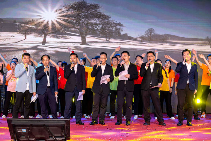 晚會(huì)尾聲,集團(tuán)領(lǐng)導(dǎo)班子登臺(tái)合唱《海闊天空》,歌聲中承載著初心與力量,也傳遞著與職工同心同德、共赴新程的堅(jiān)定決心。隨后,全體演職人員登臺(tái)合影,共同為晚會(huì)落下圓滿帷幕。